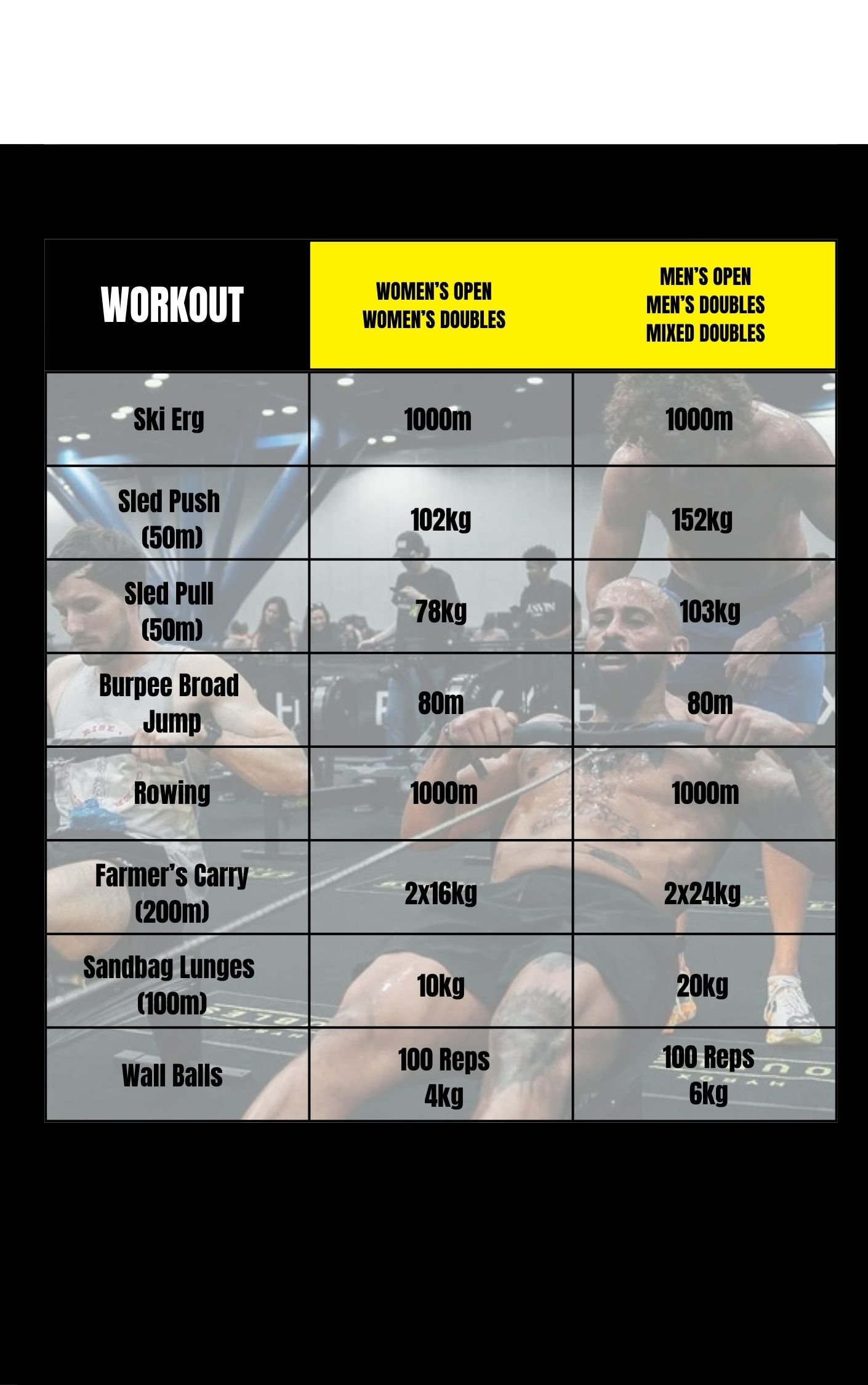 Here’s a quick race breakdown: you’ll be alternating 1 km runs with eight functional workout stations (ski‑erg, sled push, sled pull, burpee broad jumps, rowing, farmer’s carry, sandbag lunges, and wall‑balls) in the same order used by HYROX events.